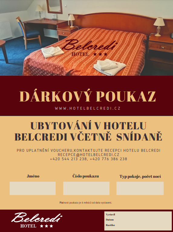 Ubytování v hotelu Belcredi je možné zakoupit na recepci i ve formě dárkového poukazu.
